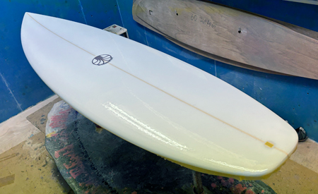 小さい波からテイクオフも早く、テールロッカーを強めにしたので